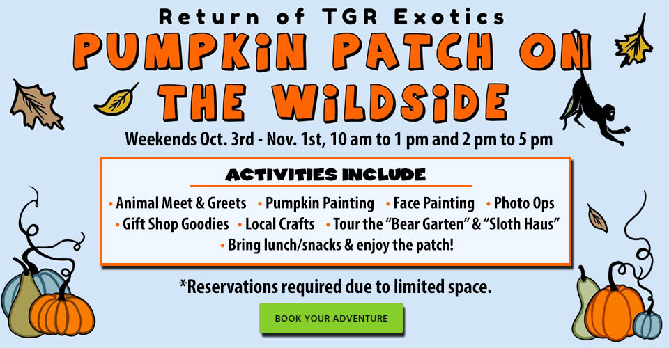 Come and enjoy seeing all the amazing animals on this basic tour. This tour is great for all ages and lasts about 1 1/2 hours.